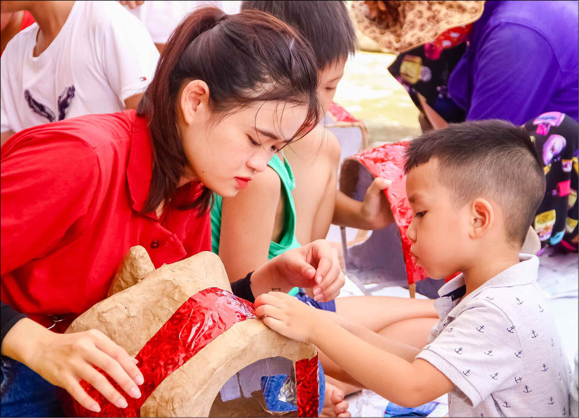 Tại Trung tâm Giá trị sống DELTA, các bé được bố mẹ cho đăng ký tham gia làm đầu lân, bánh trung thu, đèn ông sao và phá cỗ đêm rằm, tận hưởng niềm vui Tết thiếu nhi truyền thống.