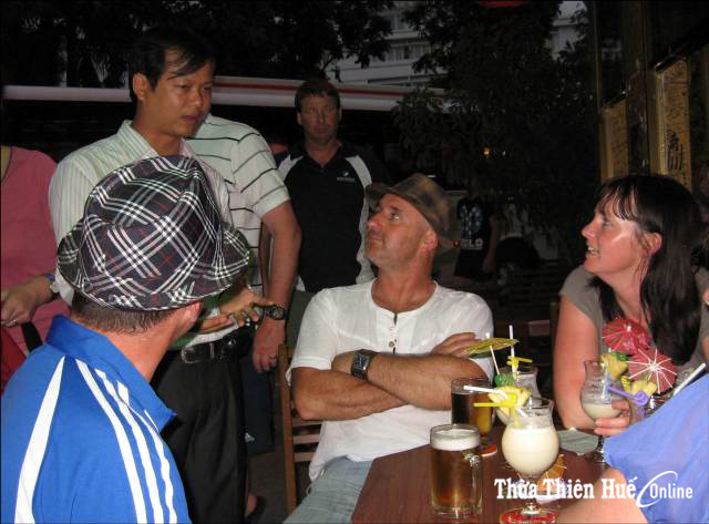 Giám đốc Lê Xuân Phương (thứ 2 từ trái sang) tại bar DMZ. Ảnh: Kim Oanh