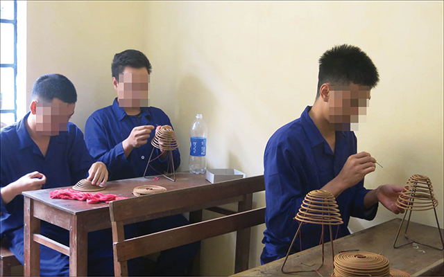 Học viên cai nghiện tại Trung tâm Bảo trợ xã hội học làm hương