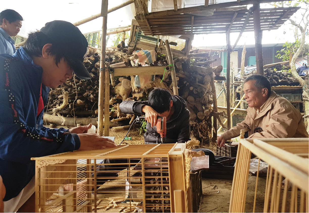 Một gia đình sống trên đảo Ông Sắt mưu sinh bằng nghề làm lồng chim
