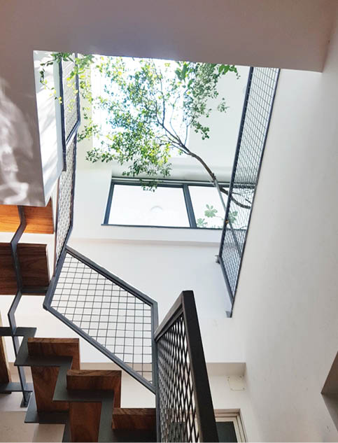 Ngoài vật liệu “xanh”, một trong những thiết kế được nhiều chủ nhà lựa chọn để tạo sự thân thiện với môi trường là sử dụng cửa kính, giếng trời để đón ánh sáng tự nhiên, làm cho không gian ngôi nhà thêm thoáng, mát và sáng. Cách này cũng giúp tiết kiệm chi phí điện chiếu sáng, sinh hoạt hàng ngày. Tôi thì không quan tâm lắm đến yếu tố này nhưng rất thích mở cửa kính để đón gió trời mỗi ngày. Cảm giác thư thái và dễ chịu hơn nhiều so với gió từ quạt máy và điều hòa, nhất là với những người có tiền sử viêm mũi dị ứng loại nặng như tôi.