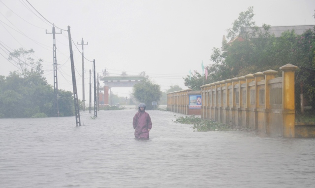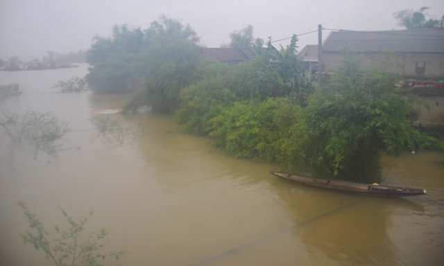 Mới đi được 50m, gió, mưa càng lúc càng nặng hạt, thôn Phú Lộc chìm trong một màu trắng xóa. Phía xa, vài chiếc đò ngược xuôi chở người, buông lưới. Bí thư chi bộ Nguyễn Hữu Thành tặc lưỡi, ngày 12 nước có xuống một chút, tới chừ đã thấy lên lại hơn 20 phân. “Mà nói rứa thôi chơ gần 1.400 khẩu của 315 hộ thôn Phú Lộc vẫn bình thường, bởi nhà cửa được tôn nền cao, có nhiều nhà cao tầng, chỉ là đường sá bị chia cắt”, ông nói.