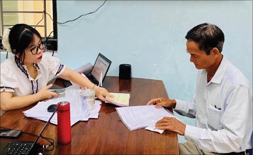 | Người dân tham gia BHXH tự nguyện tại địa bàn phường Mỹ Thượng. Ảnh: Lương Thương |