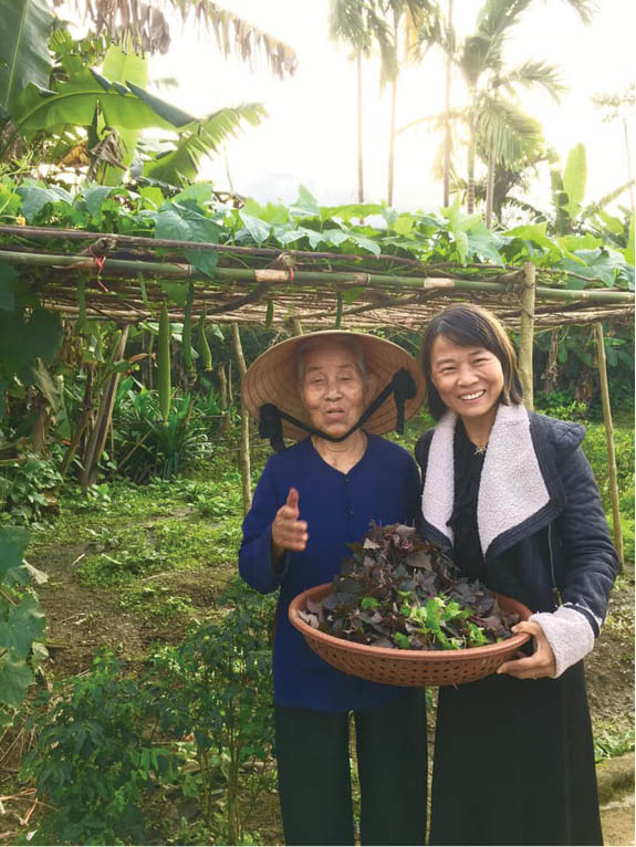 Chị Tuyết (bên phải) liên kết với các hộ trồng rau sạch