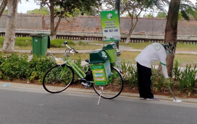 Trước tình trạng vứt bỏ khẩu trang bừa bãi, không đúng nơi quy định vẫn đang xảy ra, Công ty CP Môi trường và Công trình đô thị Huế (HEPCO) triển khai thu nhặt khẩu trang đường phố kết hợp với công tác vệ sinh môi trường thường xuyên như gom nhặt rác ngày, vệ sinh thùng rác... trên địa bàn TP. Huế và các địa phương đơn vị hợp đồng thu gom. Để đảm bảo cho công tác này, HEPCO trang bị thùng chứa rác khẩu trang chuyên biệt.