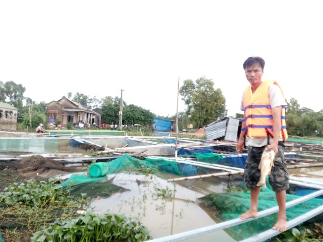 Bè của gia đình ông Đỗ Viết Thạnh có 17 lồng cá trắm cỏ, mè, cá leo, bị trôi 2 lồng. Hộ ông Huỳnh Văn Thuộc và nhiều hộ khác cũng trôi “đứt” 2- 3 lồng. “Tổng cộng 16 lồng của các hộ bị trôi và thiệt hại sẽ lớn hơn nếu như các lồng cá còn lại bị rách, vỡ. Bây giờ nước nước đang rút chậm, chưa thể kiểm tra được, song, bà con xác định tinh thần phải cố gắng khắc phục để ổn định, làm ăn”- ông Đỗ Viết Tư, Chủ tịch UBND xã Vinh Thái chia sẻ.