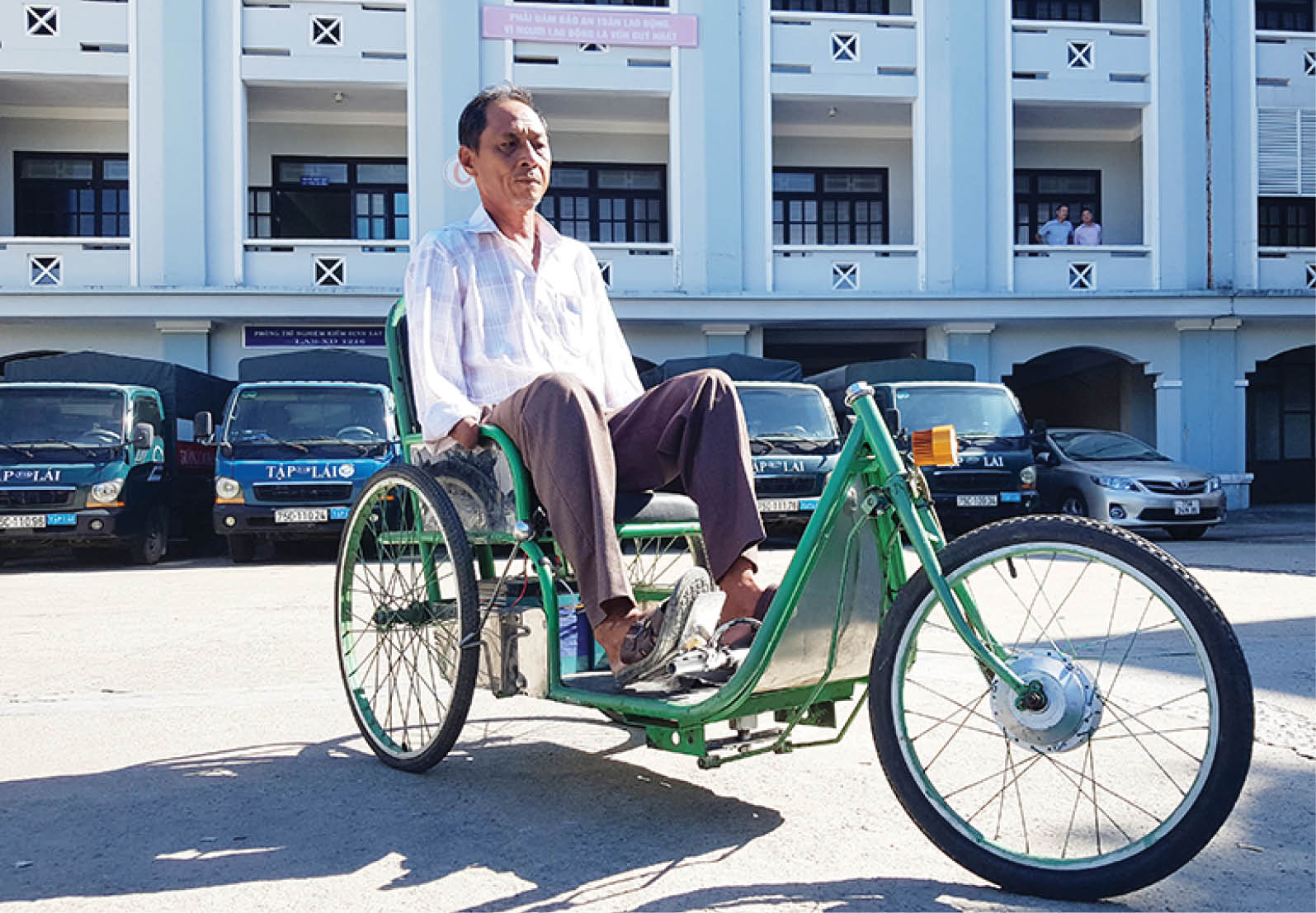 Chiếc xe điện ấy vừa được Trường CĐ Giao thông Huế tặng lại cho người đàn ông khuyết tật Huỳnh Văn An (60 tuổi, trú ở Phú Bài, TX. Hương Thủy). Đó cũng chính là công trình nghiên cứu của ba giảng viên nhà trường.