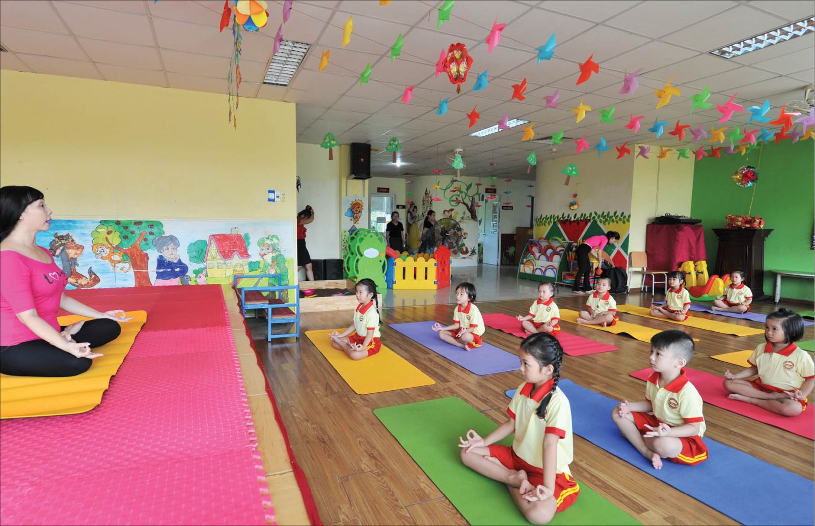 Tập yoga cho trẻ ở Trường mầm non Thảo Nguyên Xanh