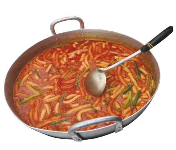 Teokbokki là món ăn được làm từ bột gạo trộn với một loại nước sốt đặc biệt làm từ tương ớt ăn kèm với kim chi muối lâu ngày được ủ trong các lu đất. Đó được xem là cách cơ bản để tạo nên một món ăn đậm chất đường phố này. Tuy nhiên khi đến với Huế, các hàng quán lại tự tạo nên phong cách riêng để gây ấn tượng với các thực khách trẻ. Ví như quán thì cho thêm chả cá, quán lại cho trộn thêm ớt Việt Nam hay tiệm thì thêm vài viên bánh gạo phô mai chẳng hạn. Bởi vậy mới nói mỗi cây mỗi hoa, mỗi quán mỗi kiểu. Nhưng nhìn chung, món này đều được các hàng quán ưu tiên ăn kèm với kim chi muối xổi - loại kim chi muối ăn liền của người việt và đương nhiên quán nào cũng ngon. Sợi bánh ở Huế làm cũng khác sợi bánh nguyên bản của Hàn Quốc, tuy không có được cảm giác dai dai như phiên bản gốc nhưng cũng dẻo và bùi cực kì nên tính ra, các cô chủ cậu chủ ở đây khéo tay, tỉ mỉ phết. Từng thớ bánh tuy không được nặn bằng máy như ở xứ Hàn nhưng cũng tròn tròn, dài dài bằng nhau, nhìn xinh xinh, ngộ ngộ. Trời lạnh, chỉ đứng hít hà cái hơi nóng bốc lên từ xoong bánh đã đủ ấm. Xích lại gần hơn để thấy bàn tay thoăn thoắt của cô chủ đảo bánh, tưới sốt hay rắc vừng thì lại càng làm lòng người thêm nôn nao. Nhiều bạn trẻ vì muốn lưu lại khoảng khắc ấy còn chụp vài pô, nhanh tay check-in cho bạn bè ở nhà muôn phần ganh tị. Bánh đã chín nhưng vẫn được giữ trong soong và lại được đảo đều mỗi lần khách gọi nên bánh khi nào cũng nóng và thơm ngào ngạt. Bởi vậy có bạn trẻ nào đã đến mà chỉ ăn mỗi một ly đâu. Chí ít cũng phải 2 đến ba ly và một vài ly trà sữa. Thành ra cái sự ăn chẳng bao giờ cô đơn được.