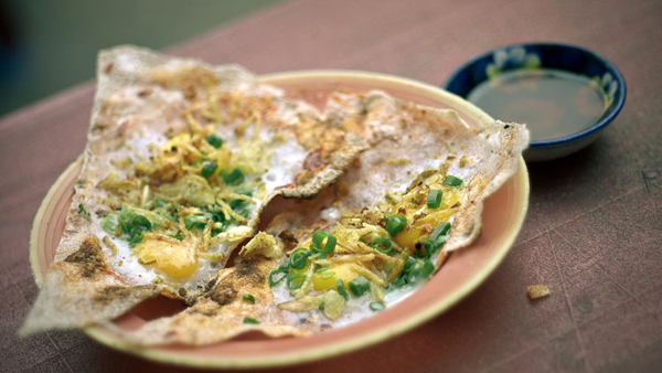 Bánh xèo là một loại bánh hầu như ai cũng mê, có bột bên ngoài, bên trong có nhân là tôm, thịt, giá đỗ, được chiên vàng, khi đổ vào chảo có tiếng xèo, đúc thành hình tròn hoặc gấp lại thành hình bán nguyệt. Tại Huế, món ăn này thường được gọi là bánh khoái và thường kèm với thịt nướng, nước chấm là nước lèo gồm tương, gan, lạc. Các loại rau ăn kèm với bánh xèo rất đa dạng ngoài rau sống, còn thêm quả vả chát, khế chua.