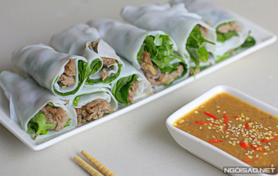 Bánh tráng cuốn thịt heo là món ăn dân dã của người miền Trung. Mỗi suất bánh tráng gồm một đĩa thịt heo lớp nạc lớp mỡ xen kẽ đủ để miếng thịt không khô, không ngấy; kèm theo rau ghém đủ các loại gồm xà lách, mùi thơm, tía tô, diếp cá... và củ quả thái lát như giá đõ, dứa, xoài, dưa chuột, chuối xanh, được cuộn tròn cùng trong bánh cuốn, chấm vào mắm nêm sóng sánh thơm mùi biển cả thật tuyệt chẳng gì bằng.