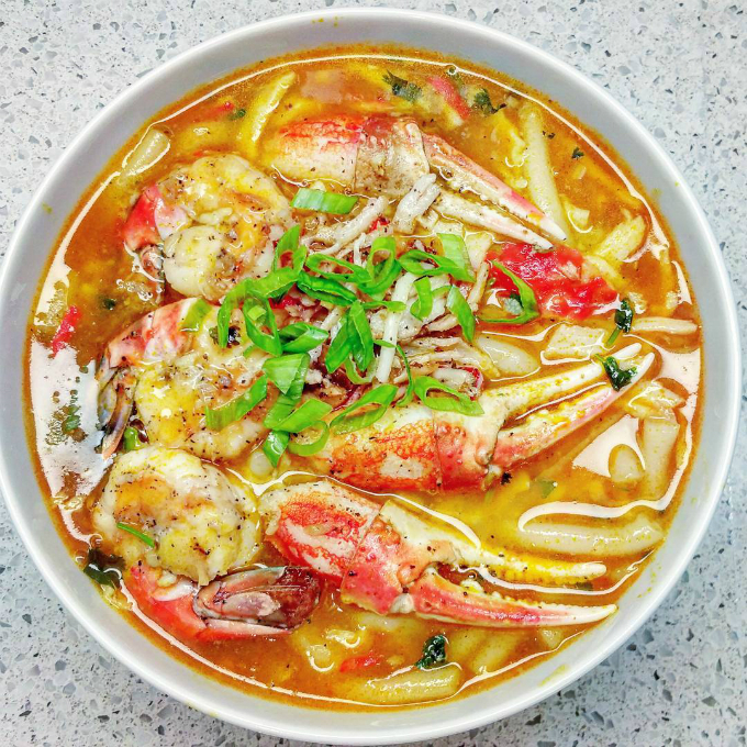 Dù sống xa nhà tới nửa vòng Trái đất nhưng cặp đôi vẫn chăm chỉ nấu món ăn Việt mỗi ngày. Để tìm được nguyên liệu nấu món ăn Việt ở Mỹ không khó nhưng để nấu được một tô bánh canh ghẹ tôm với nước dùng sánh mịn, càng cua thơm ngon, đầy đủ gia vị thế này đòi hỏi người đầu bếp phải đầu tư thời gian và tâm sức khá nhiều.