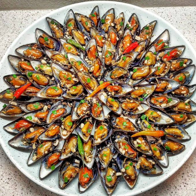 Thay vì chế biến hải sản theo kiểu Âu, chị Amber chế biến thành món trai nướng mỡ hành, ngào ngạt hương vị quê nhà. Món ăn không chỉ ngon mà còn được bày biện cầu kỳ chẳng kém gì ở nhà hàng sang trọng. Mỗi bức ảnh khi đăng tải đều khiến người xem "nuốt nướng miếng ừng ực".