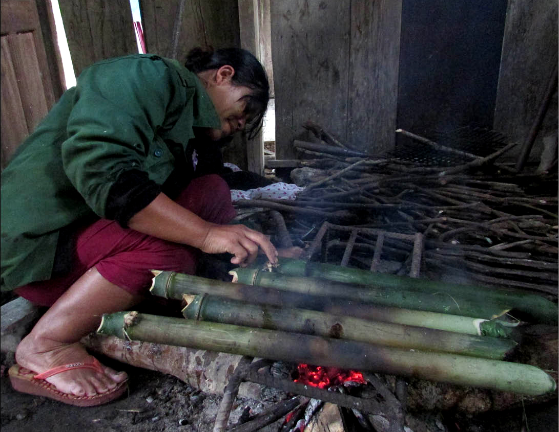 Món ống nướng thịt môn thục chỉ ngon khi nướng trên bếp củi. Món này nên ăn nóng với cơm mới hoặc dùng chung với rượu cần thì càng tăng thêm sự hấp dẫn.