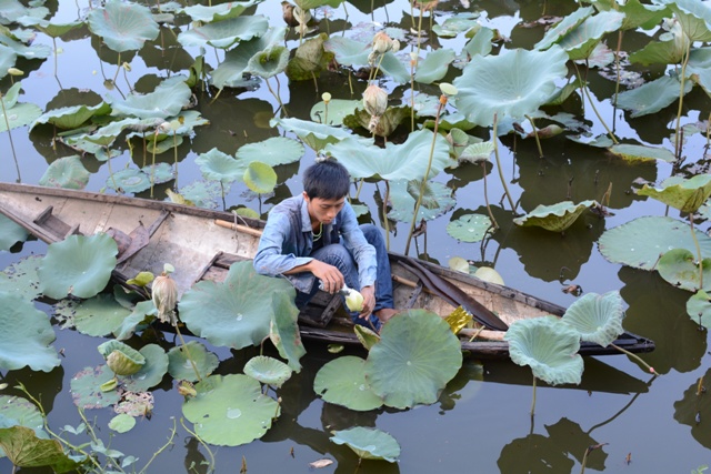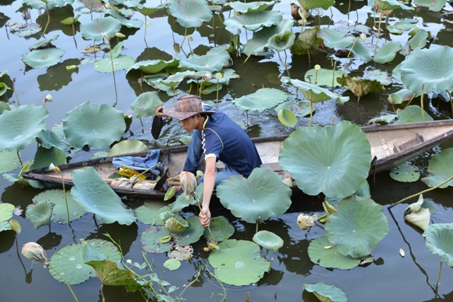 Hái trà sen trước lúc bình minh