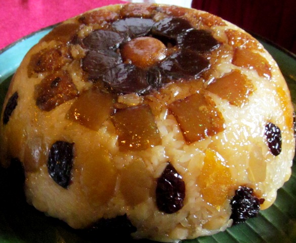 Mứt Bát Bửu (gồm các loại mứt quí và thịt heo quay) trình bày trong qủa hộp pháp lam thời Minh Mạng