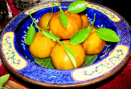 Sang trọng, trân quý không kém là món “Mứt Cam sành”, trông xinh xắn như những chiếc lồng đèn, được chế biến nguyên quả từ giống cam sành Nam Bộ tiến vua. Món ăn này có vị ngọt, thơm của mùi tinh dầu từ vỏ cam tươi, thường được dùng vào mùa xuân cùng với nước trà nóng mỗi buổi sáng, giúp giữ gìn sức khỏe.