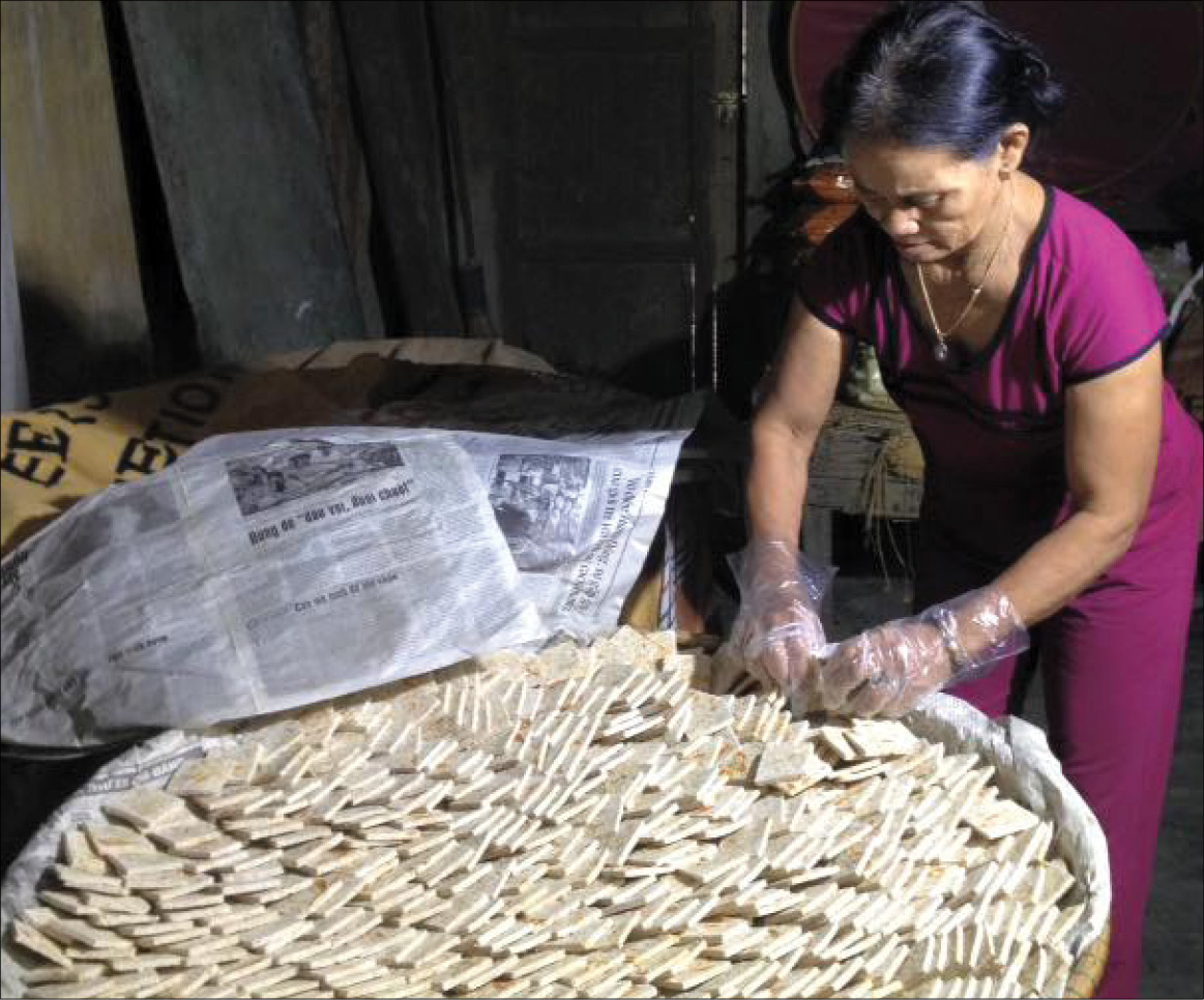 Bà Hồng sắp bánh chuẩn bị sấy khô