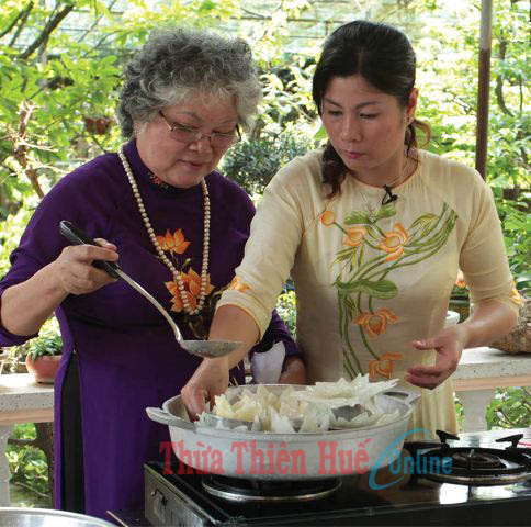 “Thời đó, cuộc sống còn nhiều khó khăn nhưng mẹ vẫn luôn dạy mấy chị em tôi, khi nấu bất kỳ món ăn nào dù là vật liệu đơn giản nhất như củ sắn, con cá, con tôm... mình cũng phải chăm chút, chế biến làm sao để vẫn là món đó, thức đó nhưng người thưởng thức vẫn cảm nhận được cái ngon, cái lạ, sự tinh tế của món ăn Huế”. Được “người thầy” nổi tiếng về nấu ăn nghiêm khắc hướng dẫn với mong muốn con cái phải vẹn toàn “công dung ngôn hạnh”, lại thấy mẹ dù vất vả nhưng vẫn luôn kiên trì tìm tòi, khôi phục và sáng tạo những món ăn cung đình nên từ những yêu thích nấu nướng đơn thuần, niềm đam mê đó dần ăn vào “máu” lúc nào không hay, chị kể.