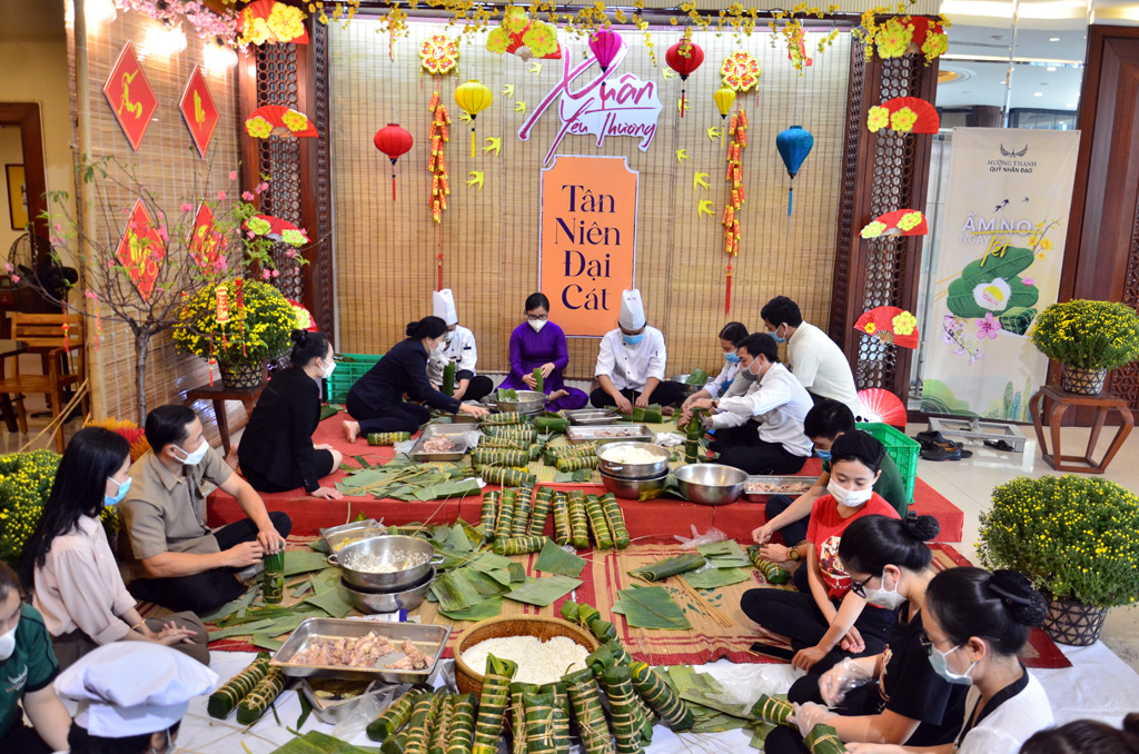 Trải nghiệm làm bánh tét ở Khách sạn Mường Thanh