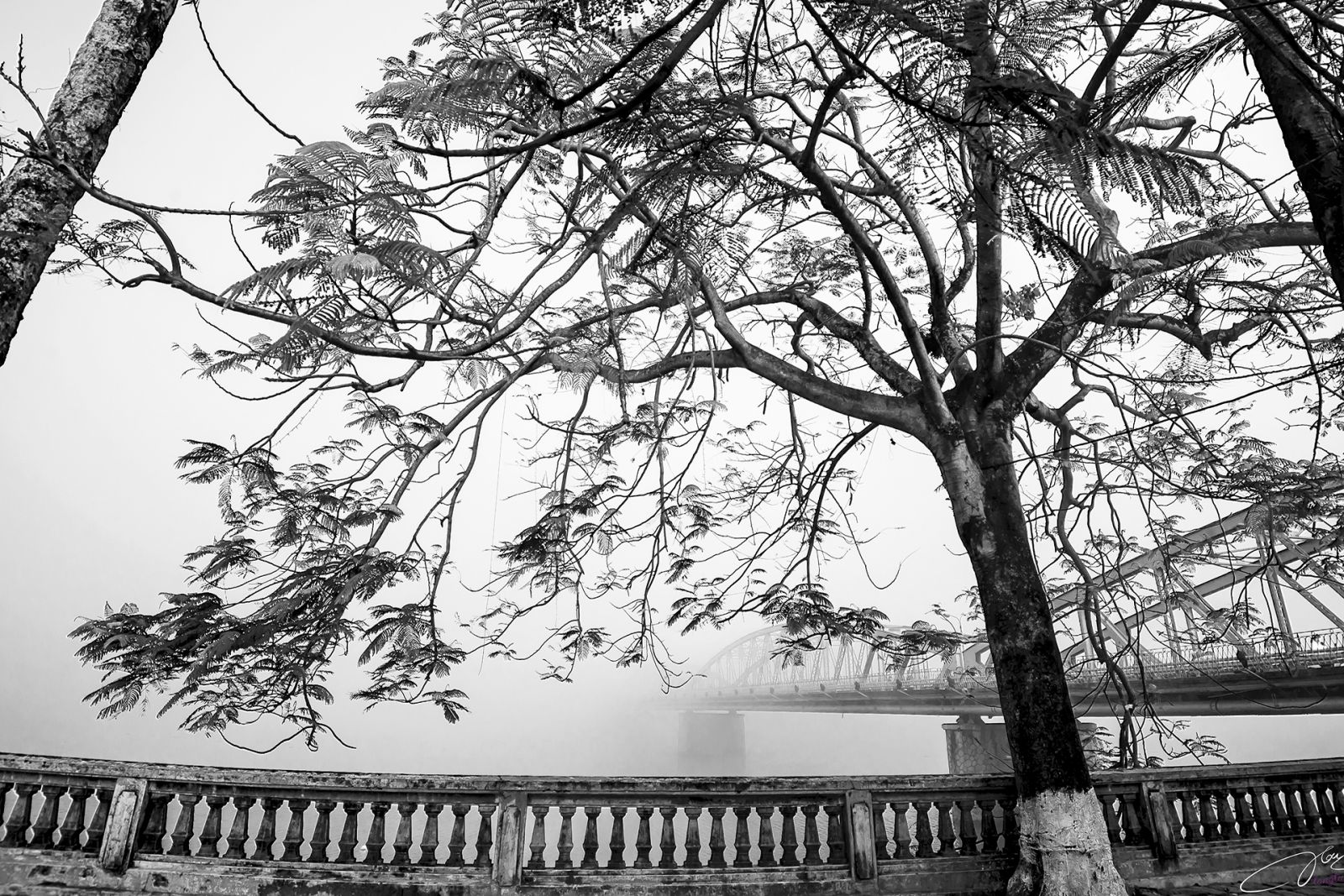 Cùng với sông Hương, cầu Trường Tiền như một gạch nối tạo nên thương hiệu, chỉ dẫn văn hóa, du lịch mà gần như khi nhắc đến Huế ai ai cũng sẽ nhớ đến. Ở nhiều góc thời gian, mùa khác nhau cầu Trường Tiền có một vẻ đẹp riêng. Trong khung ảnh là không gian của Trường Tiền một sáng sớm mờ sương đẹp đến nao lòng