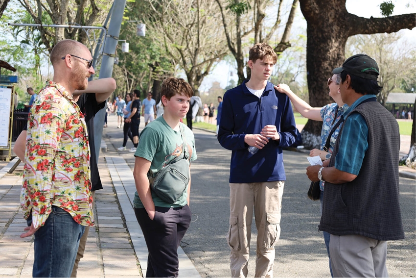 | Hướng dẫn viên chia sẻ thông tin về Đại Nội Huế cho du khách |