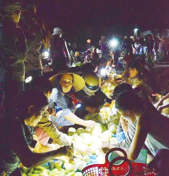 Muốn đi chợ thì phải dậy thật sớm, bởi từ 2 giờ sáng chợ đã đông, lúc này người dân Vinh Thanh đã chuẩn bị xong những mặt hàng như rau, củ, quả… họ thu hoạch từ sớm mang ra chợ bán. Tiếng bước chân của người bán người mua và những tiếng rao, tạo ra một không khí nhộn nhịp.