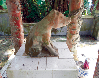 Miếu thờ Thần Cẩu hướng ra sông Bồ, cao khoảng 1,5 mét, trên có khắc ba chữ Hán “Thiên Cẩu Thần”. Tượng được tạo bằng đá, hai chân trước thẳng đứng, hai chân sau ở tư thế ngồi. Cổ tượng chó có đeo một tấm bài.