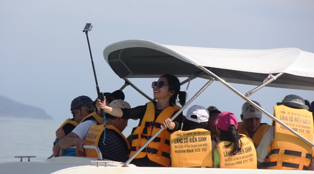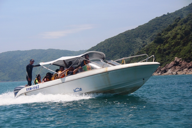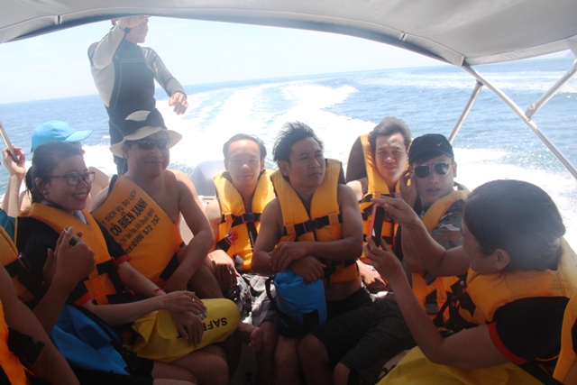 Nhiều du khách thích thú khi chiếc anô di chuyển với tốc độ tầm 40km/giờ trên biển