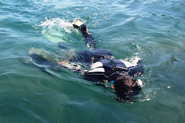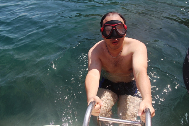Rời canô, chuẩn bị ngụp lặn xuống biển ngắm san hô