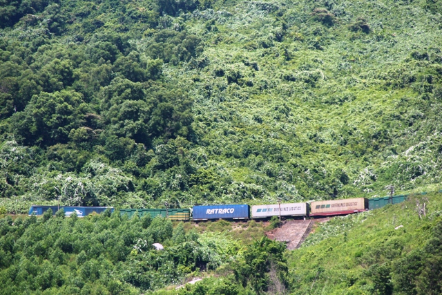 Từ khu vực biển Sơn Chà - đảo Ngọc, du khách có thể vừa tắm biển, vừa ngắm đoàn tàu Bắc-Nam uốn lượn trên đỉnh núi