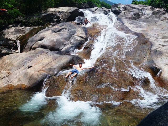 Dòng suối trong vắt được thiên nhiên kiến tạo như mái tóc thiếu nữ trắng xoá