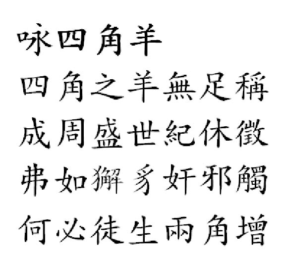 Theo nguyên chú của vua Minh Mạng, Nguyễn Văn Chương ở nước Tây Dương mang về con dê có 4 sừng bèn hiến tặng cho, hình dạng nó cũng giống như con dê lớn. Duy chỉ có dưới hai sừng lớn, lại mọc thêm hai sừng nhỏ. Sách Uyên giám loại hàm viết: Thời Chu Thành Vương có người hiến dê bốn sừng giống như vậy. Theo ghi chép cho rằng đây là điềm lành. Ngày nay tuy không nỡ giao cho đầu bếp, bèn nuôi nó để tăng thêm sự hiểu biết. Há đủ để gọi là điềm lành.