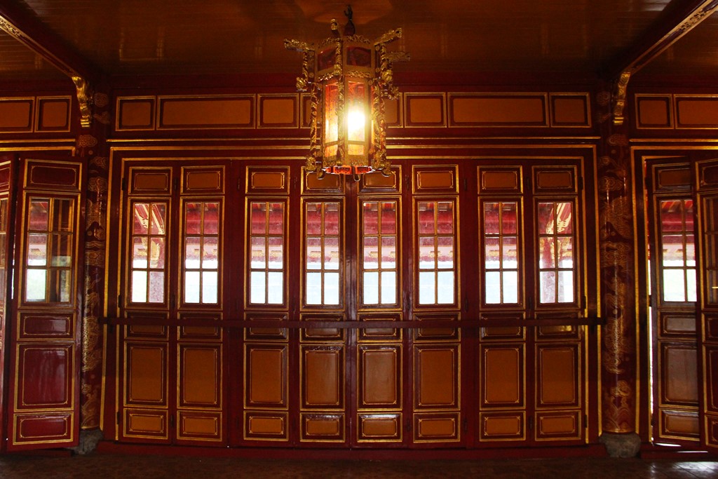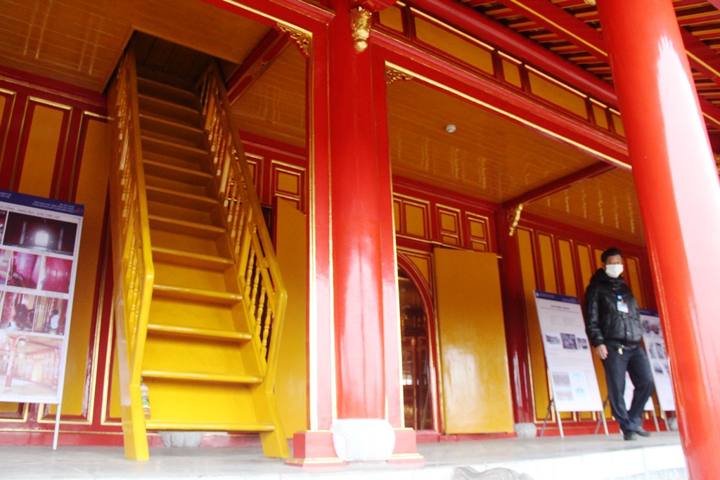Hệ thống cửa trên lầu Ngũ Phụng sau khi được trùng tu bằng kỹ thuật sơn truyền thống