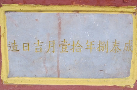 Dòng chữ Hán trên bình phong Long Mã Trường Quốc Học đề "Thành Thái bát niên thập nhất nguyệt cát nhật tạo" (Làm vào ngày tốt, tháng 11, năm Thành Thái thứ 8)