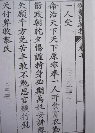 Hai câu thơ “Nhất nhân thụ mệnh trị thiên hạ, thiên hạ nguyên phi phụng nhất nhân” được chính vua Minh Mệnh sáng tác và được in trong Ngự chế thi sơ tập lưu trữ tại Viện Hán Nôm.
