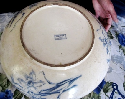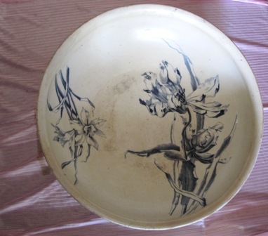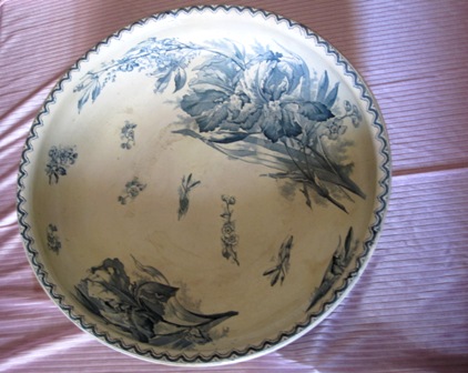Đó là hai chiếc chậu men có kích thước khác nhau, chậu lớn rộng 42cm, cao 15cm, hoa văn trang trí bằng những cành hoa. Chậu nhỏ hơn rộng 38cm, cao 12cm cũng được trang trí bằng những cành hoa. Theo ông Thanh, hai chiếc chậu này có niên đại khoảng thế kỷ 17 – 18, hoặc còn có thế sớm hơn và nó được dùng để cho vua và hoàng hậu rửa mặt.