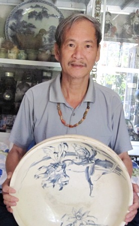 Ông Nguyễn Đăng Thanh bên cạnh hiện vật mới sưu tầm được