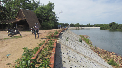 Bà Lương Thị Chậu (xóm Hội) kể: “Khi nghe có dự án làm kè, làm đường, tui rất vui vì đây là mơ ước từ lâu của dân làng. Ở xóm Hội, cứ đến mùa mưa lũ là sợ. Đường lầy lội, nước chảy xiết không đi được, xóm bị cô lập”.