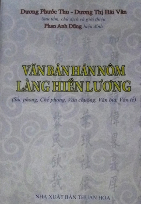Trên tư duy nghiên cứu tránh “đụng hàng” đó, Văn bản Hán Nôm làng Hiền Lương là cuốn sách đầy tâm huyết đối với truyền thống văn hóa tổ tiên của tác giả Dương Phước Thu và con gái Dương Thị Hải Vân. Sách do Nhà xuất bản Thuận Hóa ấn hành tháng 8-2013; dày gần 300 trang, số văn bản Hán Nôm gốc và hình ảnh về văn bia, lễ hội đều được in màu trang nhã. Tính khu biệt của công trình là sưu tầm, chú dịch các Sắc phong, Chế phong, Văn chuông, Văn bia, Văn tế của làng Hiền Lương, hiển nhiên sẽ không nghiêng về nhận định, phân tích. Mà nó đòi hỏi công sức điền dã và sự tỉ mẩn nhọc công soi từng con chữ Hán Nôm, đòi hỏi niềm đam mê và lòng phúc đáp với cội nguồn dòng tộc.