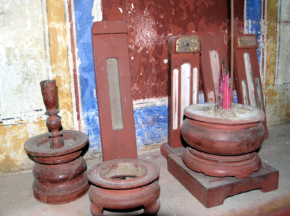 Bàn thờ bên tả với đồ tự khí đơn sơ
