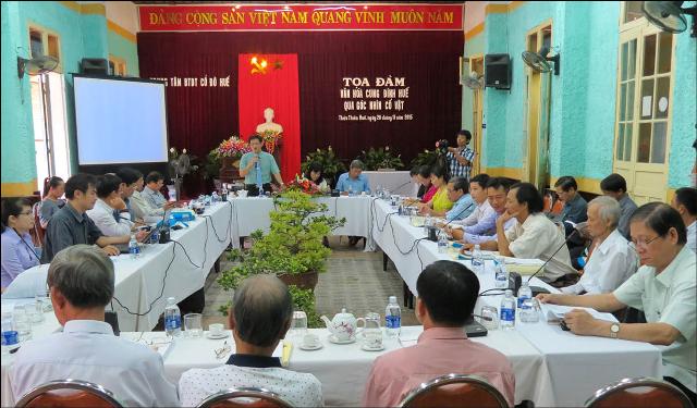 HNN - Chiều 20/11, Trung tâm Bảo tồn Di tích Cố đô Huế tổ chức buổi tọa đàm khoa học về chủ đề: “Văn hóa cung đình Huế qua góc nhìn cổ vật”. Tham dự buổi tọa đàm có các nhà nghiên cứu văn hóa Huế, như: Phan Thuận An, Hồ Tấn Phan, Nguyễn Xuân Hoa, Nguyễn Anh Huy, Trần Đình Sơn, Trần Đình Hằng, Vũ Kim Lộc và đại diện các bảo tàng, phòng trưng bày trên địa bàn tỉnh.