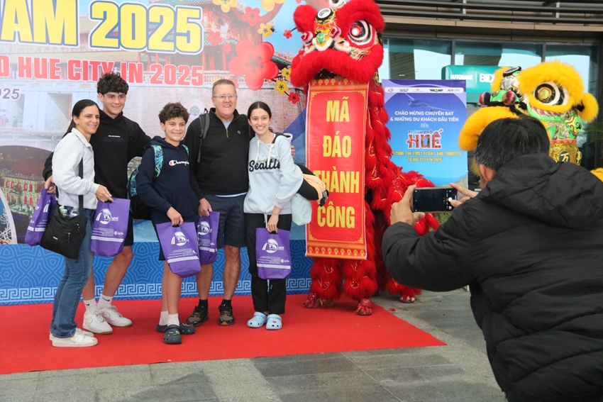 Nhóm hành khách đầu tiên cùng cơ trưởng và tiếp viên trưởng của chuyến bay được lãnh đạo UBND thành phố, Sở Du lịch, Hiệp hội Du lịch, Cảng HKQT Phú Bài, Cảng vụ Miền Trung tại Cảng HKQT Phú Bài và Văn phòng Vietnam Airlines tại TP Huế, Pacific Airlines phối hợp đón tiếp, trao hoa và tặng quà lưu niệm chúc mừng năm mới. Đặc biệt, 4 hành khách may mắn nhất được tặng 4 vé máy bay khứ hồi nội địa của Vietnam Airlines, Pacific Airlines và quà lưu niệm của Sở Du lịch. Các hành khách khác đi cùng chuyến bay cũng được tặng quà lưu niệm, thưởng thức chương trình biểu diễn nghệ thuật chào mừng và nhận những lời chúc năm mới từ lãnh đạo thành phố, ngành du lịch địa phương.
