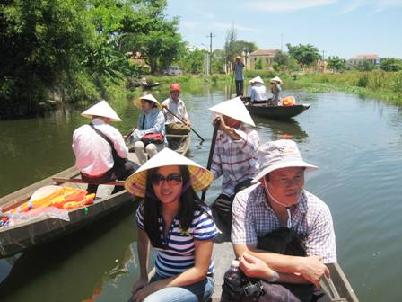 Bơi thuyền– một trong những sản phẩm du lịch hấp dẫn du khách của cầu ngói Thanh Toàn