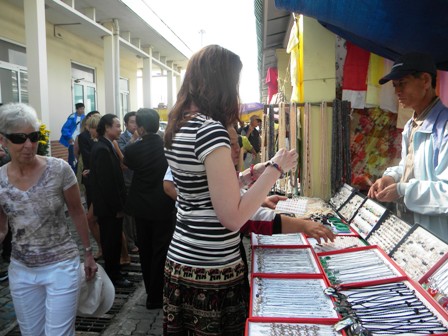 Khách du lịch ghé mua hàng lưu niệm tại khu Cảng