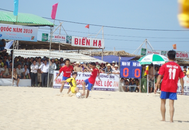 Môn bóng đá bãi biển tổ chức ở Thuận An thu hút đông đảo người xem