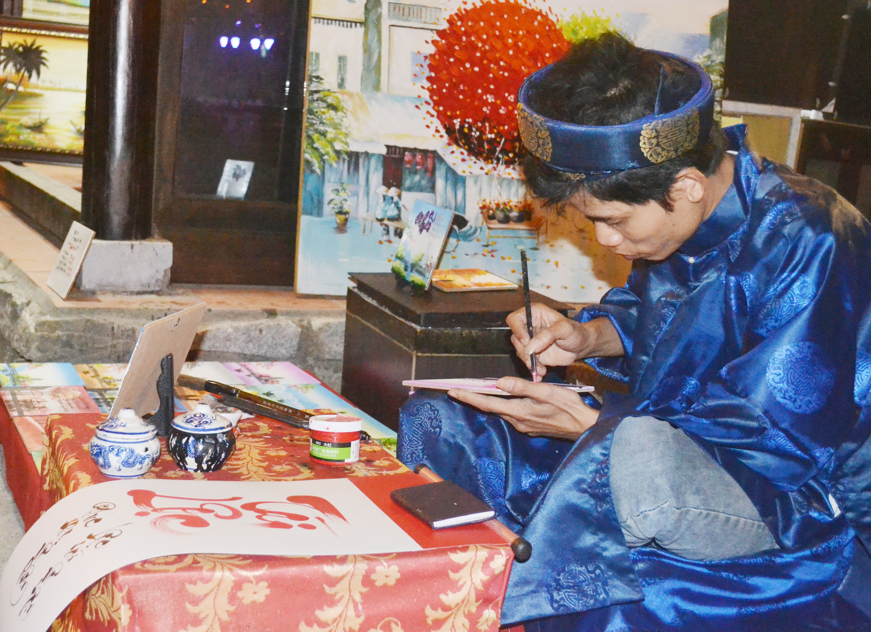 Hoạt động thư pháp diễn ra hàng đêm ở phố đi bộ
