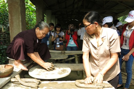 Người dân Phước Tích trình diễn nghề làm gốm.