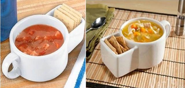 Đồ gốm tích hợp ly ăn súp và khay đựng bánh theo phong cách phương Tây