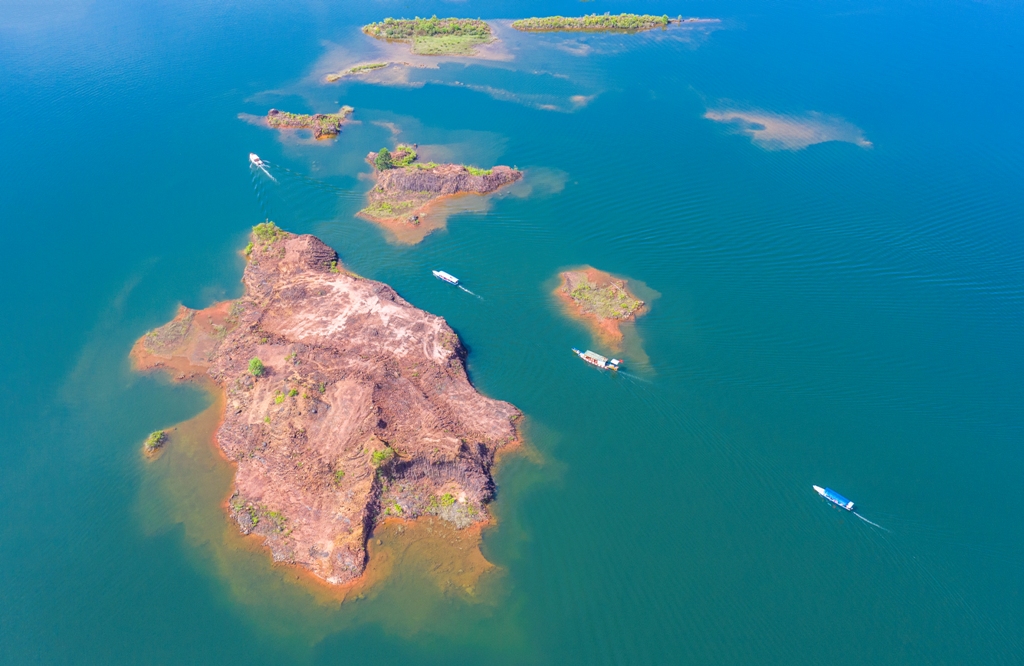 Nhiều đoàn thuyền đưa khách từ hồ Thủy Tiên vào suối Tiên. Ở góc máy này, Nông Thanh Toàn bảo rằng đó là “tiểu Hạ Long” giữa lòng Huế
